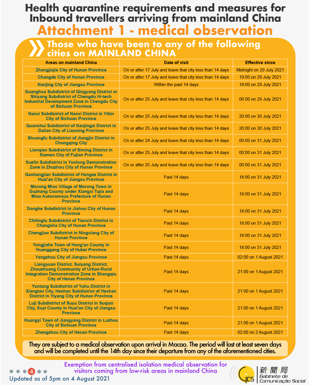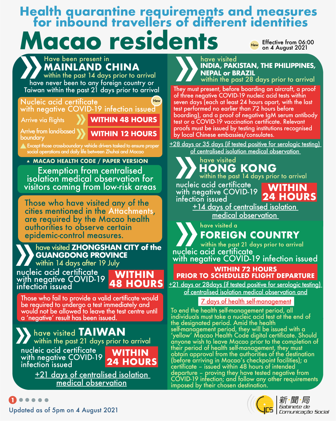 [infographic] 4 August 2021 health quarantine requirements and measures for inbound travellers