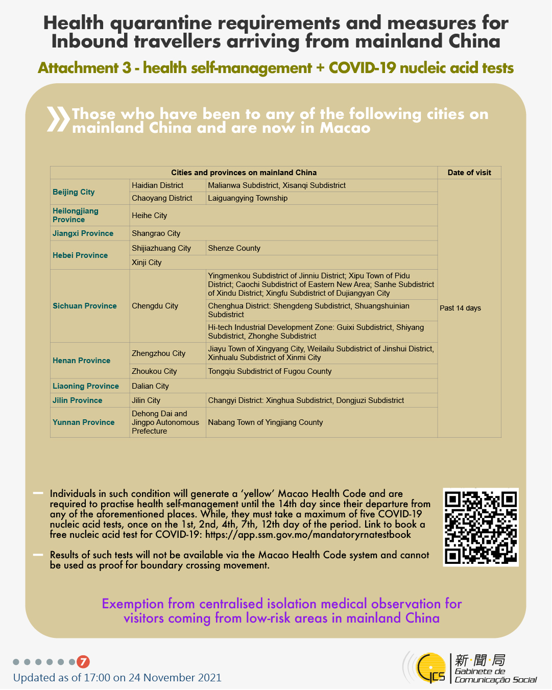 [infographic] 24 November 2021 health quarantine requirements and measures for inbound travellers of different identities.