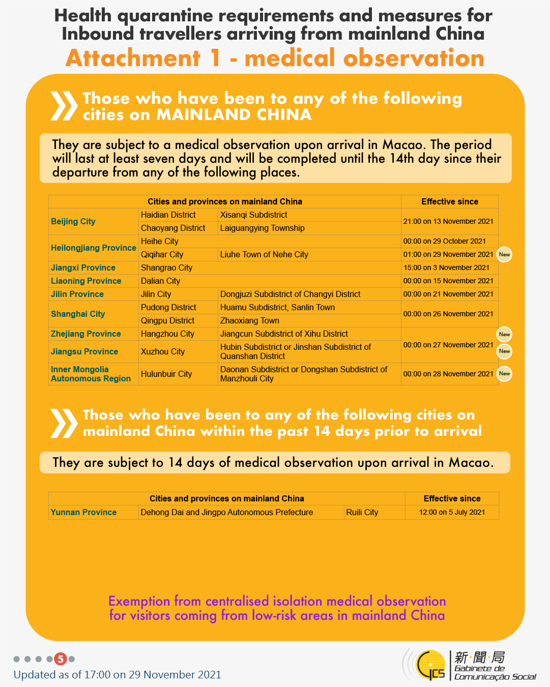 [infographic] 29 November 2021 health quarantine requirements and measures for inbound travellers of different identities.