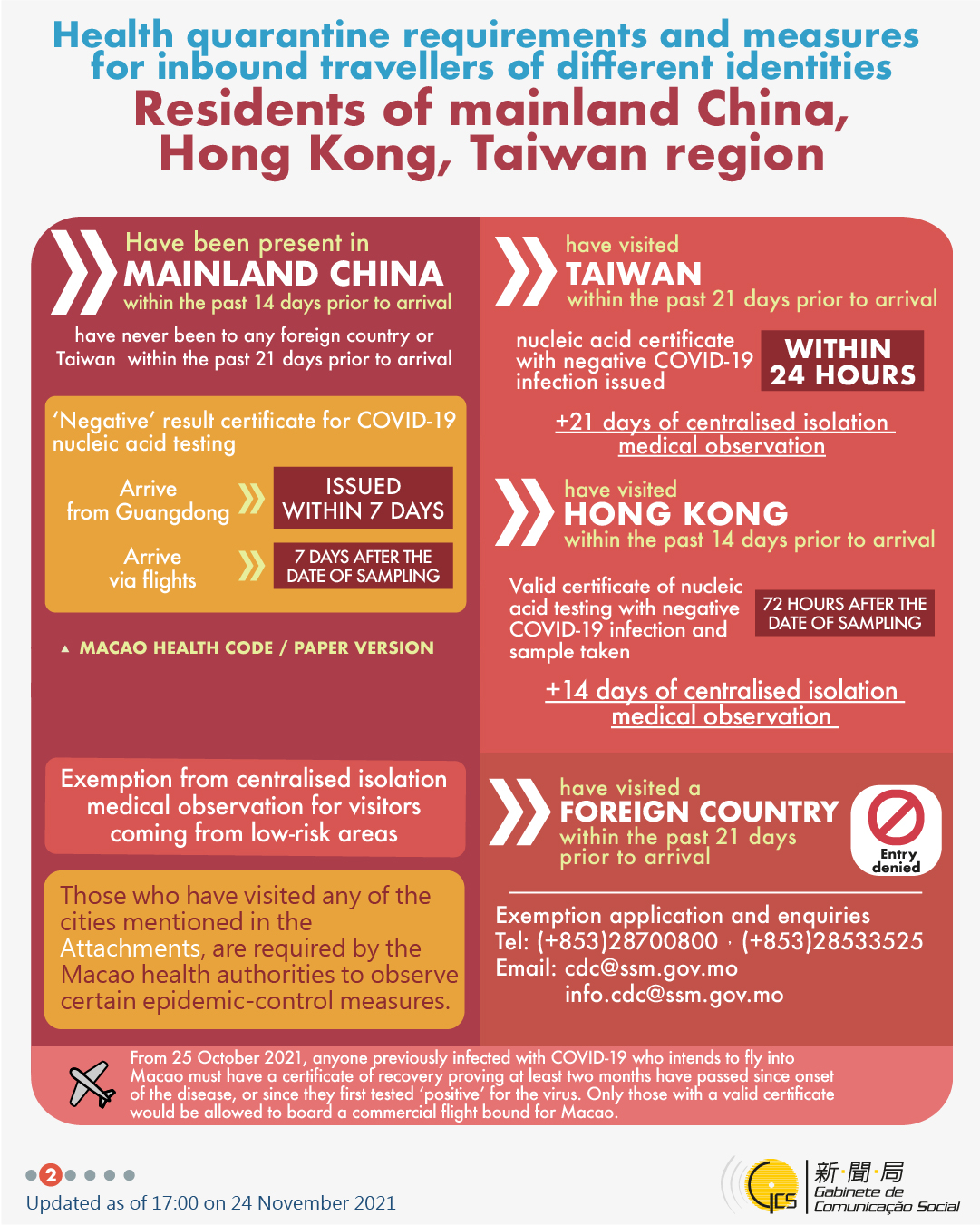 To get the latest official news, please subscribe the Government Information Bureau’s Telegram News Channel at https://t.me/macaogcsEN.
