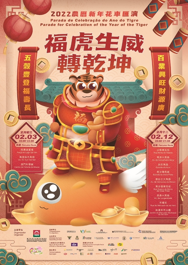 Please visit https://www.macaotourism.gov.mo/en/article/cny/parade-2022 or follow MGTO's WeChat ID “MGTOweixin” for the event program of the “2022 Parade for Celebration of the Year of the Tiger”.