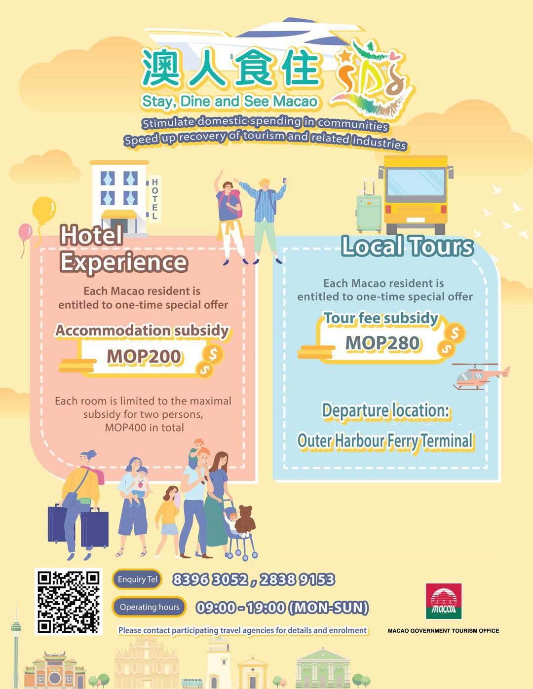 For details about signing up for local tours and hotel staycations, please visit the website: https://www.macaotourism.gov.mo/en/article/subsidies/macao-tour-hotel