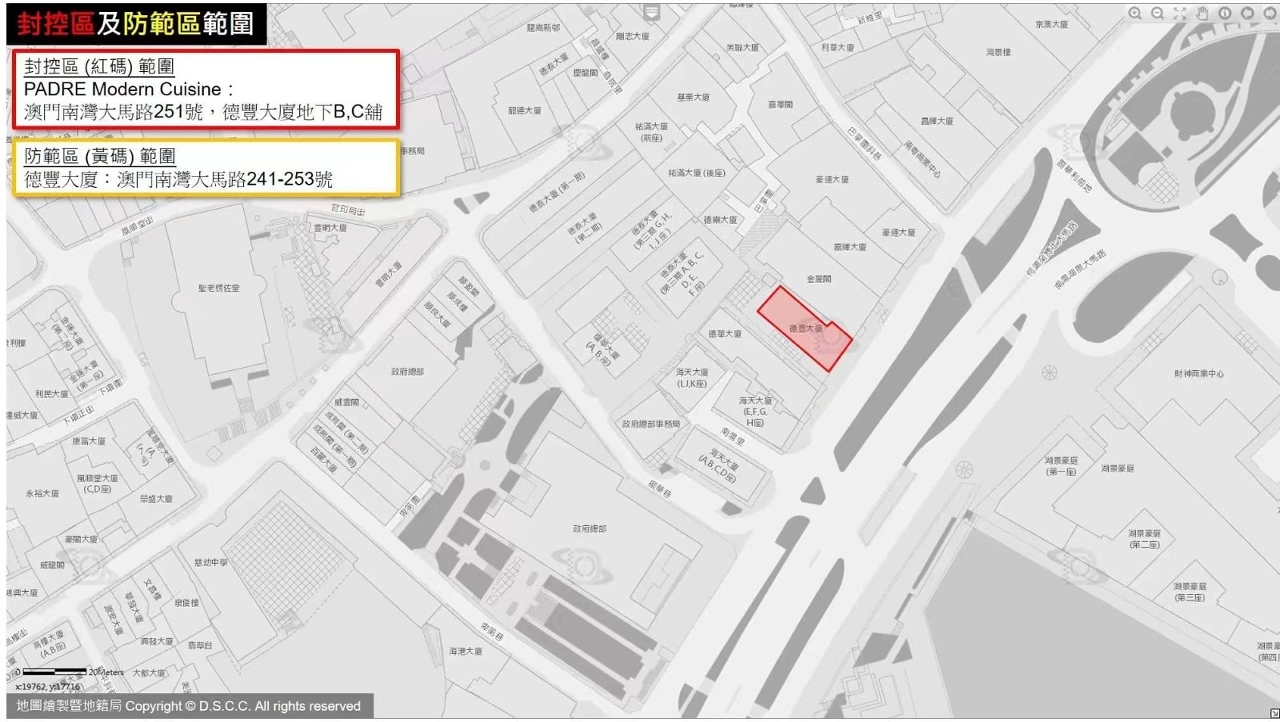 Presently, Edf. Yim Lai (Rua de Manuel de Arriaga No. 66-66C) and PADRE Modern Cuisine (Avenida da Praia Grande No. 251, Edf. Tak Fong, G/F, Shop B and C) have been classified as the “lockdown zone”, for which the restriction of assigning a red health code have been imposed among other measures such as on-site nucleic acid testing. Nucleic acid tests are temporarily arranged to be conducted on the 1st, 2nd, 3rd, 5th and 7th days. Only entry into but no exit from the zone would be permitted, with the except of staff. Individuals in this zone should minimize their activities and collect supplies at the designated spot only. While comprehensive restriction and closed-off management are in place, affected individuals may be quarantined for medical observation on site or be transferred to a suitable location for centralized management and medical observation according to the actual circumstances.