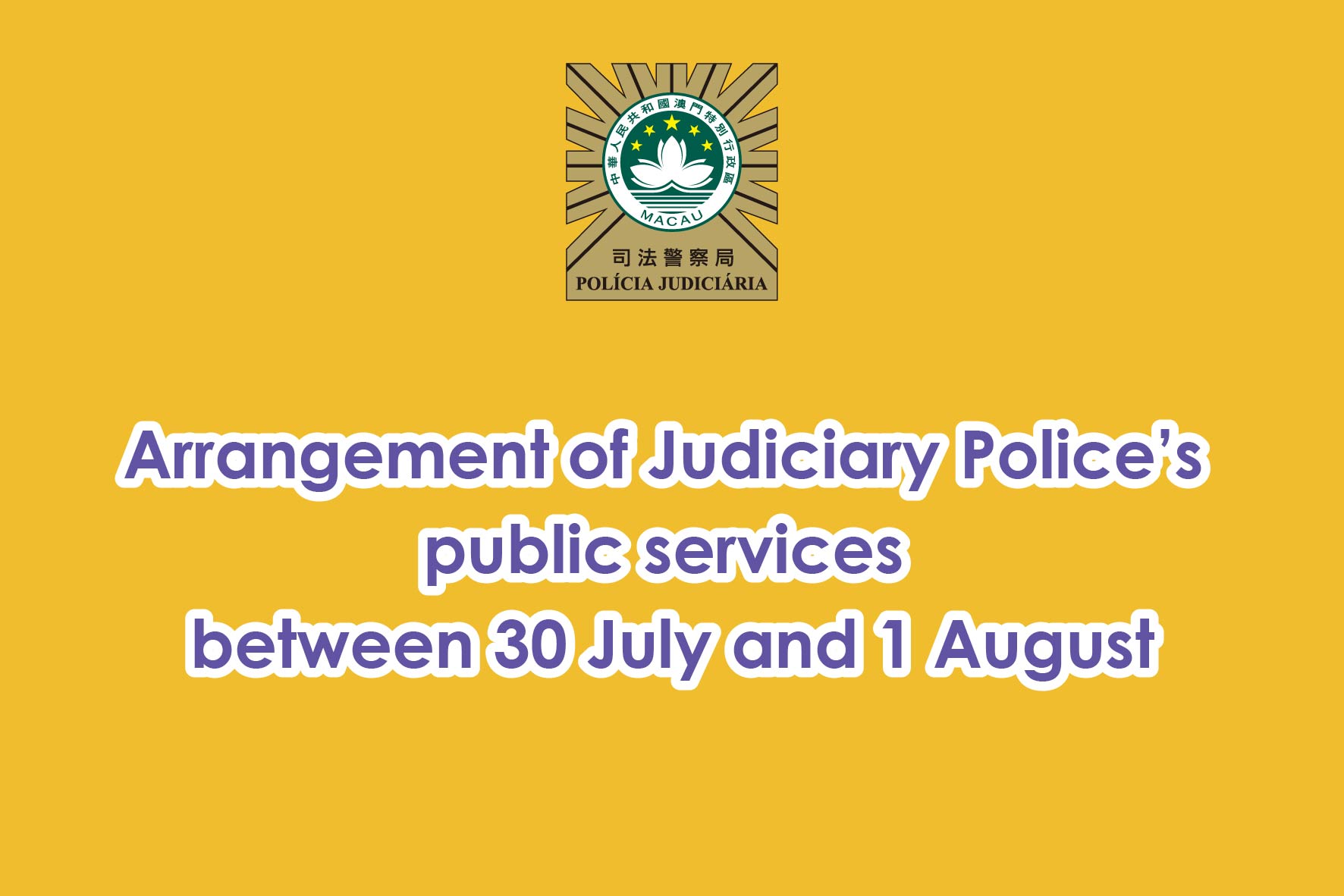To fully support the SAR government's efforts in tackling the epidemic and to ensure public safety, the Judiciary Police will deploy officers to assist anti-epidemic work, increase patrol, as well as strengthen crime prevention. In regards of public services, the Judiciary Police Case Reporting and Emergency Operation Centre, and Reporting Room will operate continuously between 30 July and 1 August. All appointments to come to the Judiciary Police to assist in police investigation (statement taking) or take the "paternity test” within this period will be rescheduled and individuals concerned will be notified on a workday. Should you have further enquiries, please call 8800 1326.