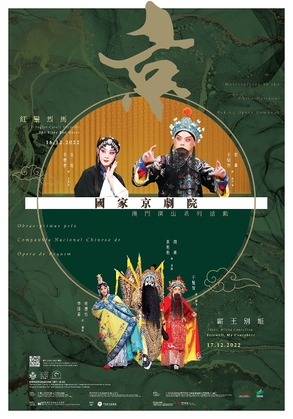 The Ministry of Culture and Tourism of the People’s Republic of China and the Secretariat for Social Affairs and Culture of Macao SAR, present the China National Peking Opera Company in two shows to be staged at Macao Cultural Centre’s Grand Auditorium on December 16 and 17 (Friday and Saturday), at 19:30.