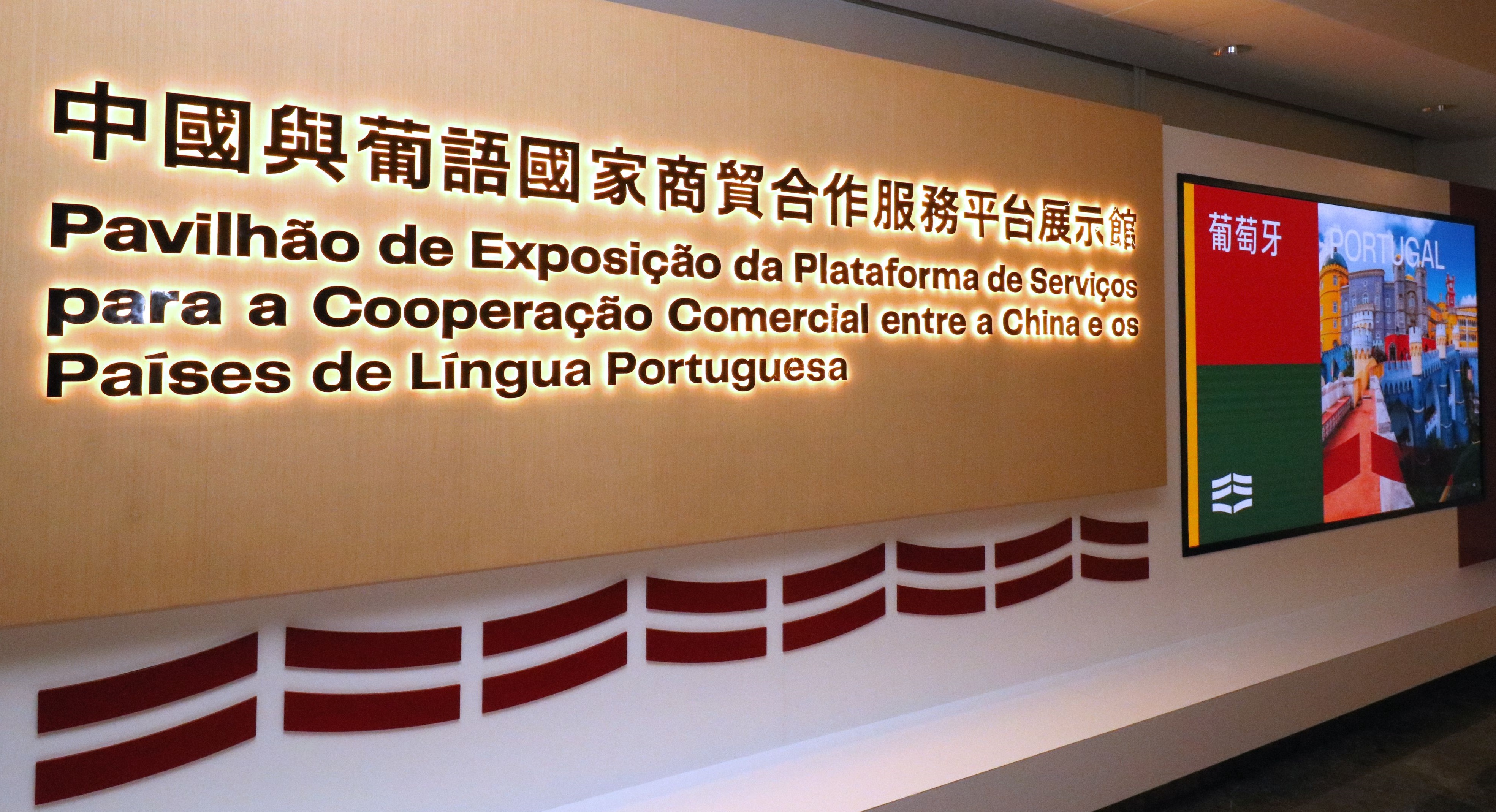 The Pavilion of China-Portuguese-speaking Countries Commercial and Trade Service Platform displays comprehensive information on the construction of the China-PSCs Platform in multiple dimensions through exhibits and multi-media installations