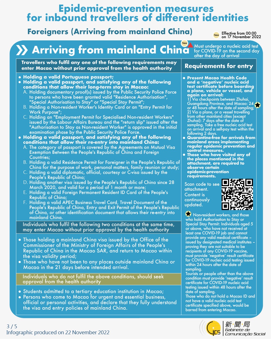 [infographic] Epidemic-prevention measures for inbound travellers of different identities (22 November 2022 )
