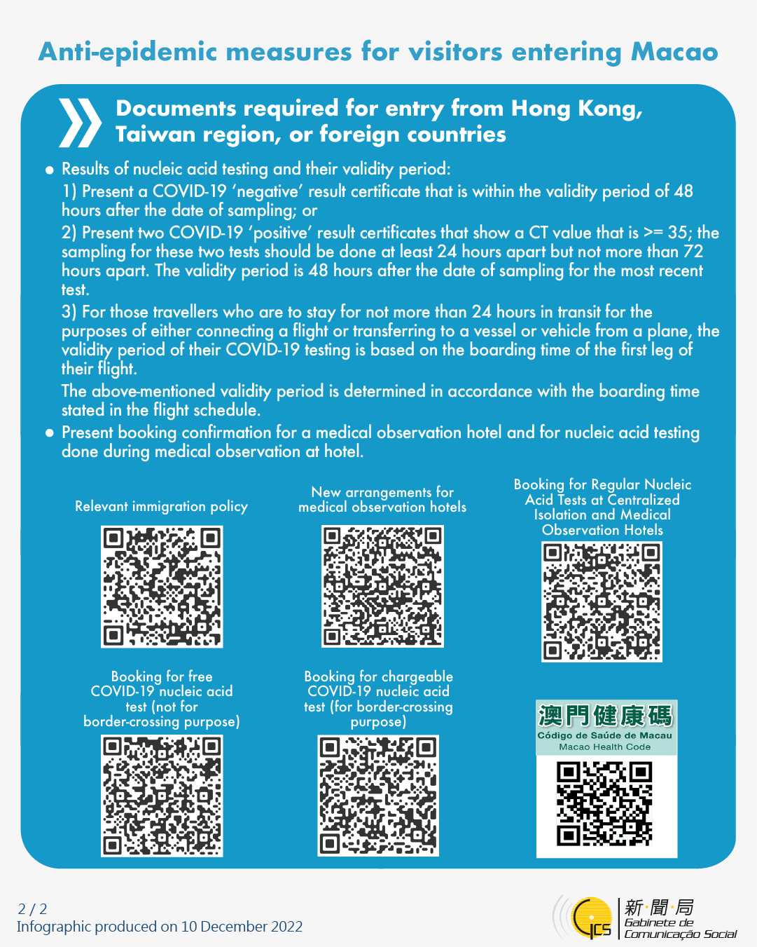 [infographic] Anti-epidemic measures for visitors entering Macao (10 December 2022 )