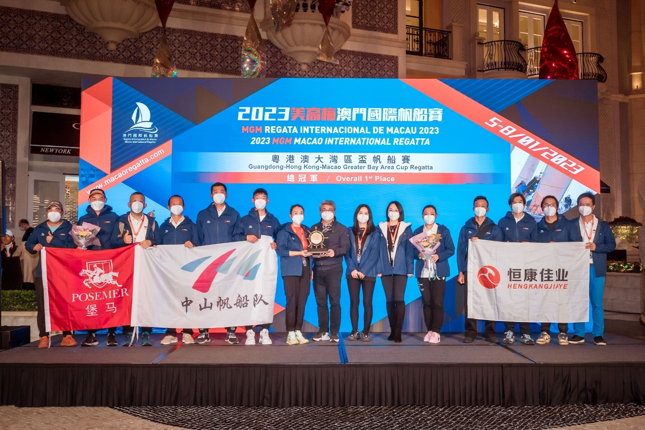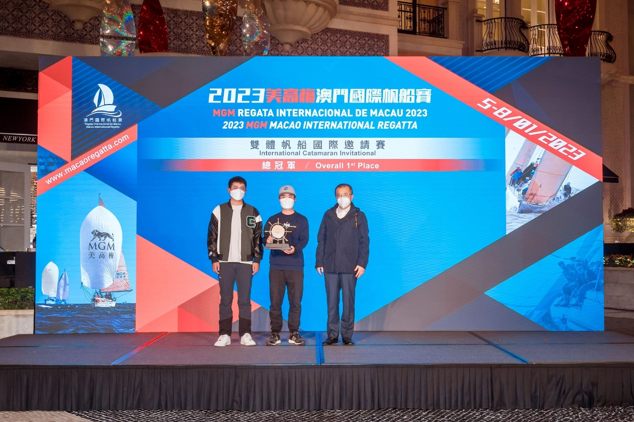 The 2023 MGM Macao International Regatta, organized by the Sports Bureau of the Macao SAR Government and the Ursa Major Sailing Event Management, co-organized by the Marine and Water Bureau of the Macao SAR Government and the Macau Sailing Association, supported by Zhuhai Culture, Radio, Television, Tourism and Sports Bureau and title-sponsored by MGM, officially concluded today. After four days of thrilling sailing races, Big Boys Sailing Team, Zhongshan Sailing Team and LC Sailing Team were crowned overall champions in the Macao Cup International Regatta (Beneteau First 40.7 unified design group), the Guangdong-Hong Kong-Macao Greater Bay Area Cup Regatta (IRC group) and the International Catamaran Invitational (Hobie 16 unified design group), respectively.
