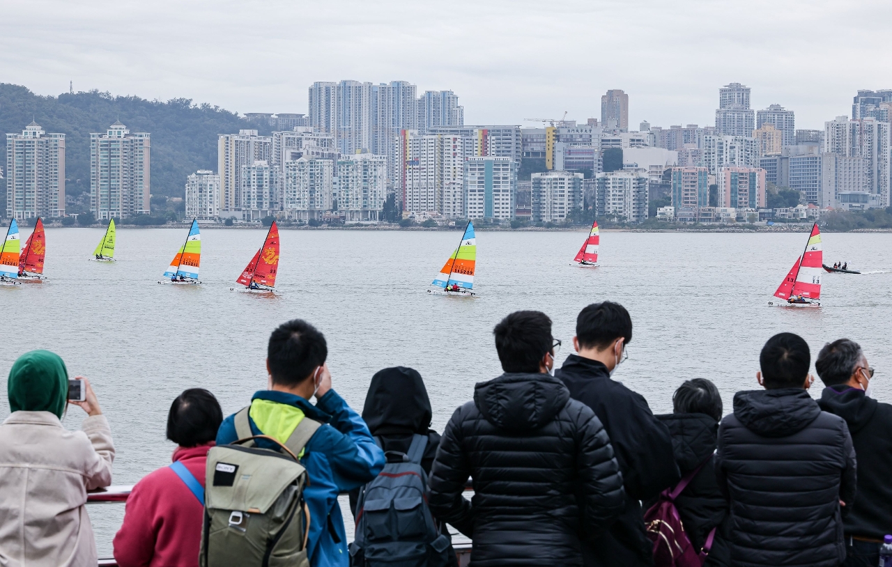 The participating boats took part in a fleet parade this morning, starting from the Macau Fisherman's Wharf, passed through Macao Science Center, Kun Iam Ecumenical Center and Governador Nobre de Carvalho Bridge, and returned at Macao Tower. The organizers have also arranged various ancillary activities to elevate the atmosphere of the event, including spectating activity, photography competition, sailing boat demonstration and Sailing Fun Day, to allow residents and tourists to deepen their understanding of sailing sport and to promote marine sports in Macao.