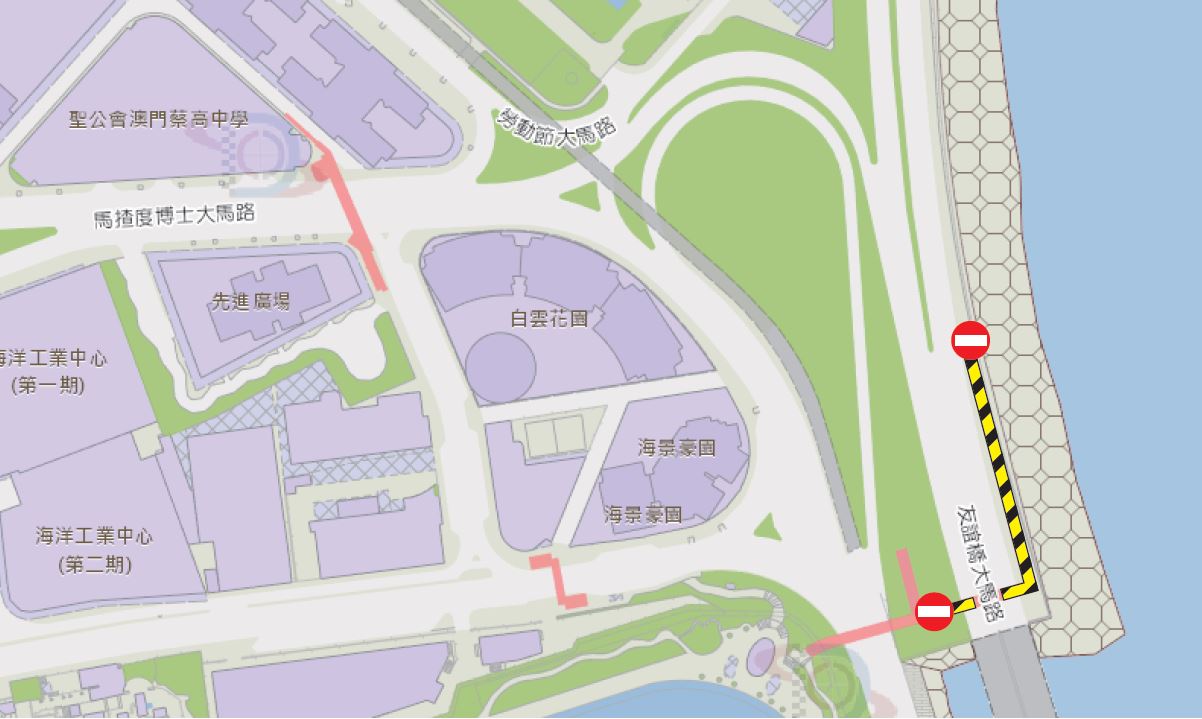 Direcção dos Serviços de Obras Públicas will carry out construction works to build a flyover of connection bridge (A2) from Zona A dos Novos Aterros Urbanos to Macao Peninsula, which are estimated to be completed by October 2024. The actual completion date depends on the work progress of the department. During the work period, use of the footbridge between Reservatório Park and Avenida da Ponte da Amizade is to be suspended and the footbridge is to be closed. The public can access the mentioned footbridge through the entrance and exit in Reservatório Park (near Rua dos Pescadores) solely for access to Dog Park in Avenida da Ponte da Amizade (please see the attached picture). The public who go to Reservatório Park through Marginal da Areia Preta Park are required to use other road crossing facilities.