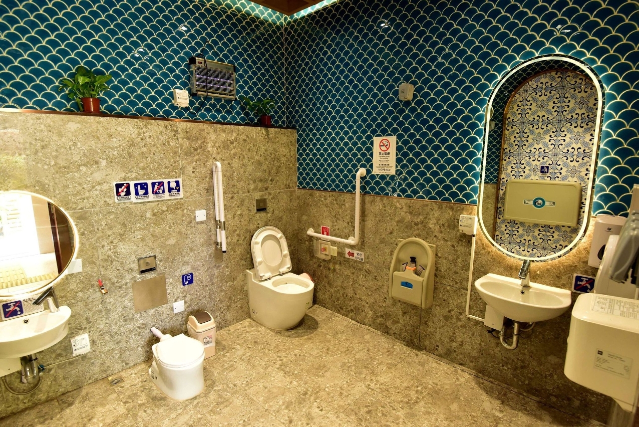 In recent years, IAM has continuously carried out the “Public Toilet Optimisation Programme”. The public toilets have been redesigned and the environment of the toilets have been beautified. At the same time, the specifications of the public toilet have been enhanced and the interior and layout of the ancillary facilities have been optimised in ways like increasing the ratio of female toilet cubicles, improving the natural ventilation and lighting, carrying out greening of the interior and installing disinfection and deodorisation equipment. Automatic sensors have been introduced to the faucets, soap and toilet paper dispensers, flushing equipment, etc. to improve the hygiene of the public toilets. Barrier-free facilities, parent-child toilets, nursing rooms, etc. are installed in some public toilets for those in need if space conditions allow. IAM will continue to optimise public toilet facilities and strengthen public toilet management to provide a better environment for the public and tourists, so as to build a healthy and beautiful city together.