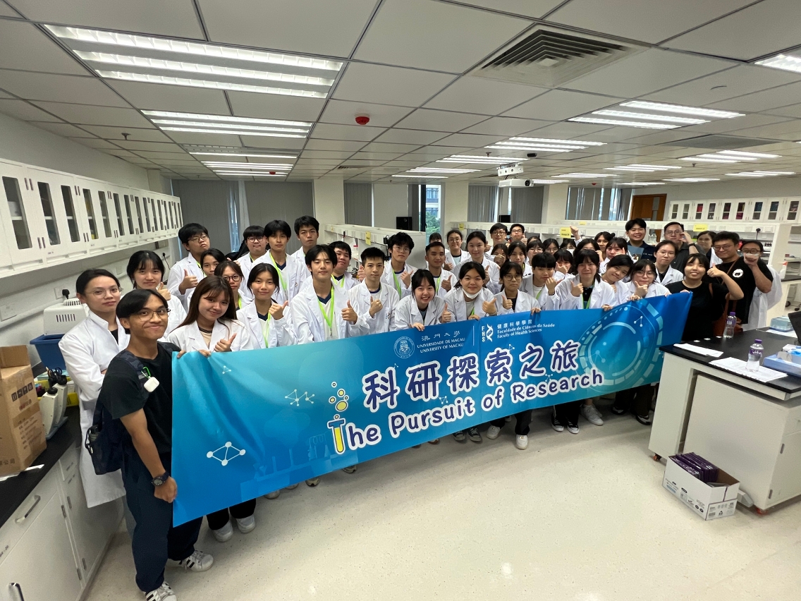On the occasion of its tenth anniversary, the University of Macau (UM) Faculty of Health Sciences (FHS) organised the fifth and the sixth instalments of its science popularisation activity ‘The Pursuit of Research’, attracting over 70 students and teachers from 11 secondary schools in Macao. The activity provided an opportunity for the participants to visit the core facilities of FHS and conduct a series of hands-on experiments, with the aim of boosting students’ interest in health sciences and making the most of their summer break.