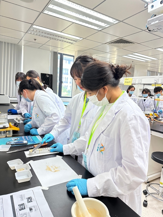 Led by FHS Senior Instructor Wang Li and Research Assistant Professor Sun Heng, the students and teachers visited the faculty’s core facilities and gained an understanding of UM’s research achievements in the fields of precision oncology, stem cells and development, and ageing and related diseases. Under the guidance of the FHS members, students conducted a series of experiments related to biomedical sciences, pharmaceutical sciences, and bioinformatics to learn about scientific theories and acquire experimental skills.
