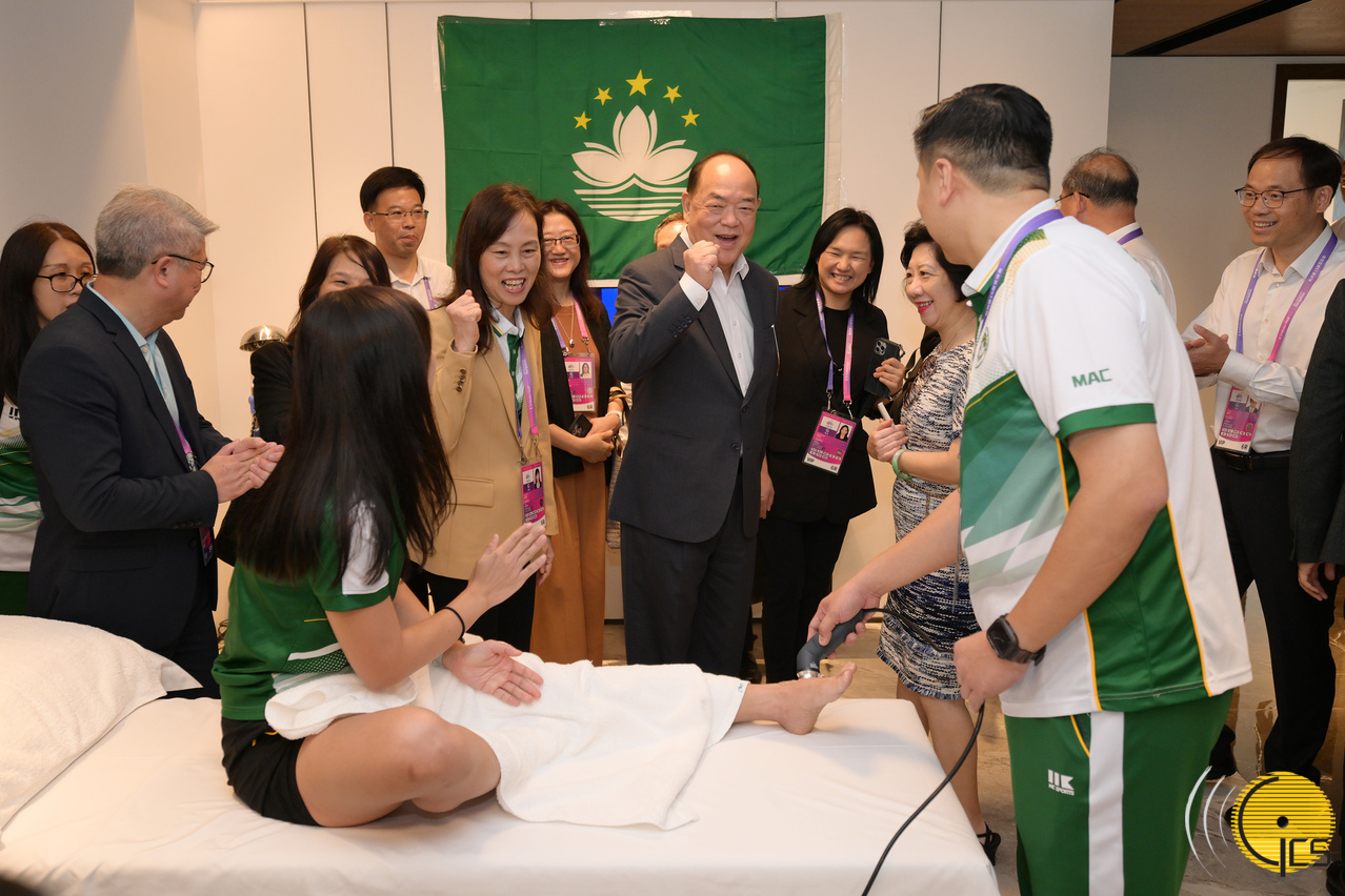 The Chief Executive later gave a group interview to some Macao media. He said that even facing high-level opponents, the Macao athletes were performing well at the 19th Asian Games, achieving outstanding results. Mr Ho also praised the members of the Macao delegation for their dedication in maintaining intense training programmes. Their perseverance deserved to be recognised and encouraged, he added.
