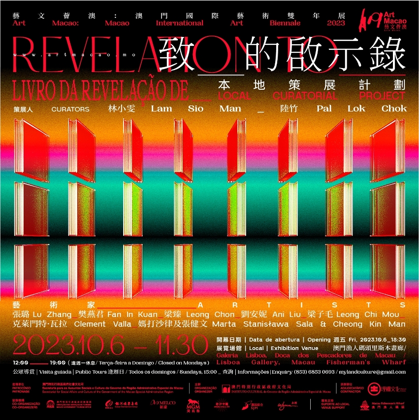 Under the patronage of the Secretariat for Social Affairs and Culture of the Macao SAR Government, the Local Curatorial Project featured in the “Art Macao 2023”, is organised by the Cultural Affairs Bureau, and co-organised by the Macao Government Tourism Office, Galaxy Entertainment Group, Melco Resorts & Entertainment Limited, MGM, Sands China Ltd., SJM RESORTS, LIMITED, and Wynn Macau, Limited.