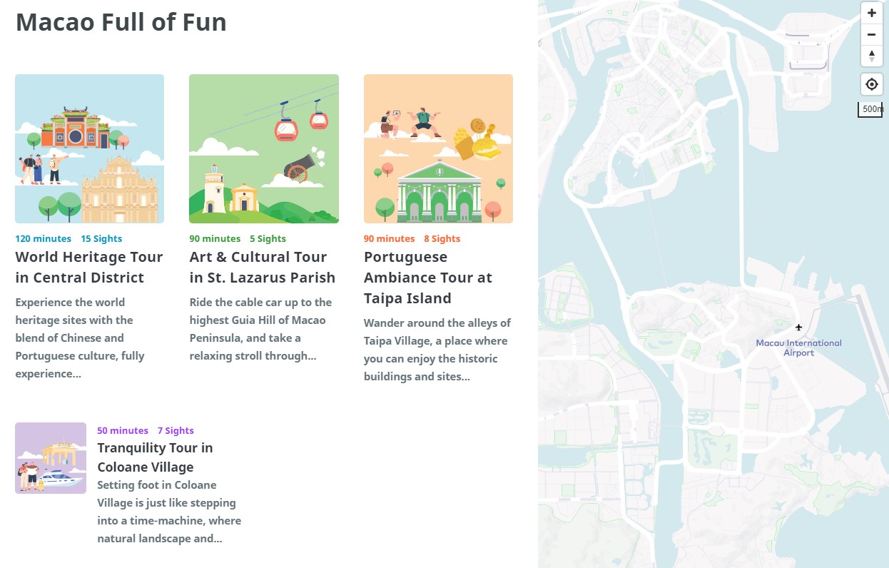 In terms of technology application, the “Macao Full of Fun – Smart Trip Planner” and the “smart application for visitor flows”, which forecasts visitor flow at 117 tourist attractions in Macao. Information about distinctive shops, cultural and creative shops and classic brands is also offered, allowing users to design their own itineraries that suit their varying interests.