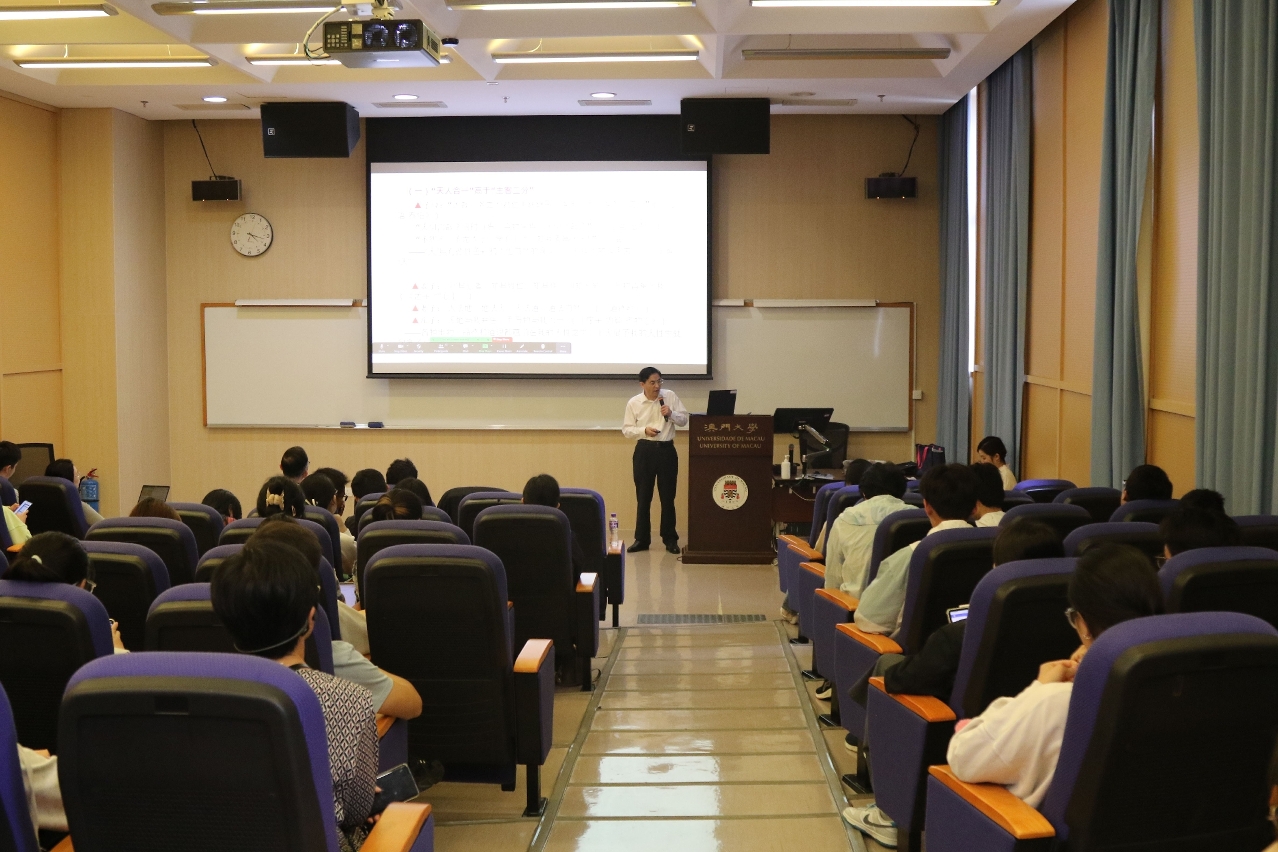 The Faculty of Arts and Humanities (FAH) of the University of Macau (UM) held the Macao Humanities Forum. The event featured Tian Qibo, executive dean of the Jao Tsung-I Institute of Culture Studies at Shenzhen University and chief expert of major projects of the National Social Science Foundation of China, as the speaker. Prof Tian delivered a lecture titled ‘The Inheritance and Development of Traditional Chinese Culture’. The lecture attracted many on-site and online participants, including faculty members and students of UM.