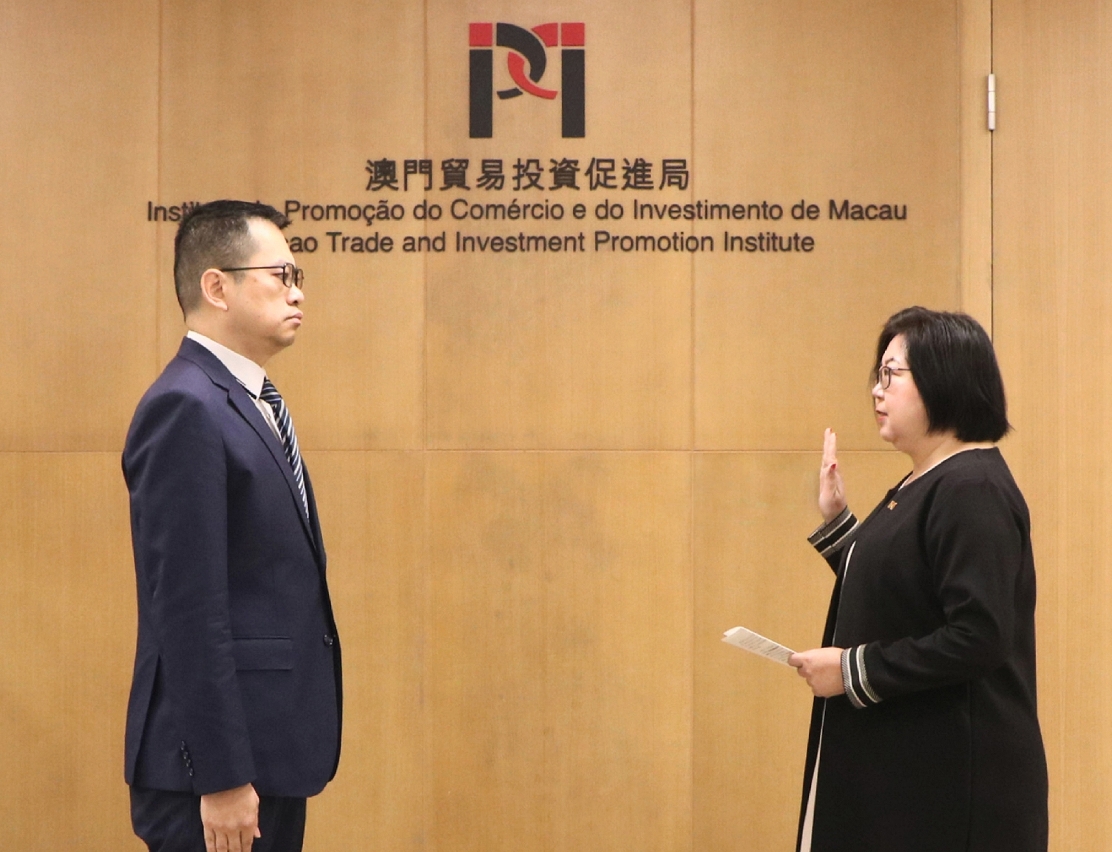 The inauguration ceremony of Executive Director of Board of Directors of the Macao Trade and Investment Promotion Institute (IPIM) Elaine Wong was held at the office in the China-PSC Complex today (7 February). Witnessed by Secretary for Economy and Finance Lei Wai Nong and Chief of Office of the Secretary for Economy and Finance Ku Mei Leng, the ceremony was moderated by President of IPIM’s Board of Directors Vincent U, and attended by IPIM’s leaders and department heads.