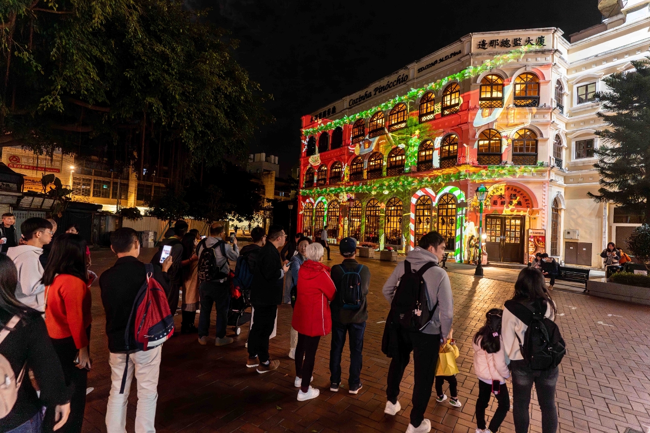 The projection teams from Macao and the two UNESCO Creative Cities of Design – Wuhan and Seoul (Korea) created their own creative themed shows with meticulous efforts. Various themed projection mapping shows were presented on Macao Peninsula, Taipa and Coloane on different days including: “Unlock the Magic: Journey into Wonderland” at Macao Science Center; “Enjoy Magic”, “Season Diffusion” and “A Dose of Lighting Dopamine” at Largo dos Bombeiros in Taipa (the façade of Cozinha Pinocchio Taipa); “A Beacon of Light in Macao’s winter night” and “Dazzling Winterland” at the Chapel of St. Francis Xavier in Coloane. The shows manifested the collaboration and exchange across fields between Macao as a UNESCO Creative City of Gastronomy and other creative cities.