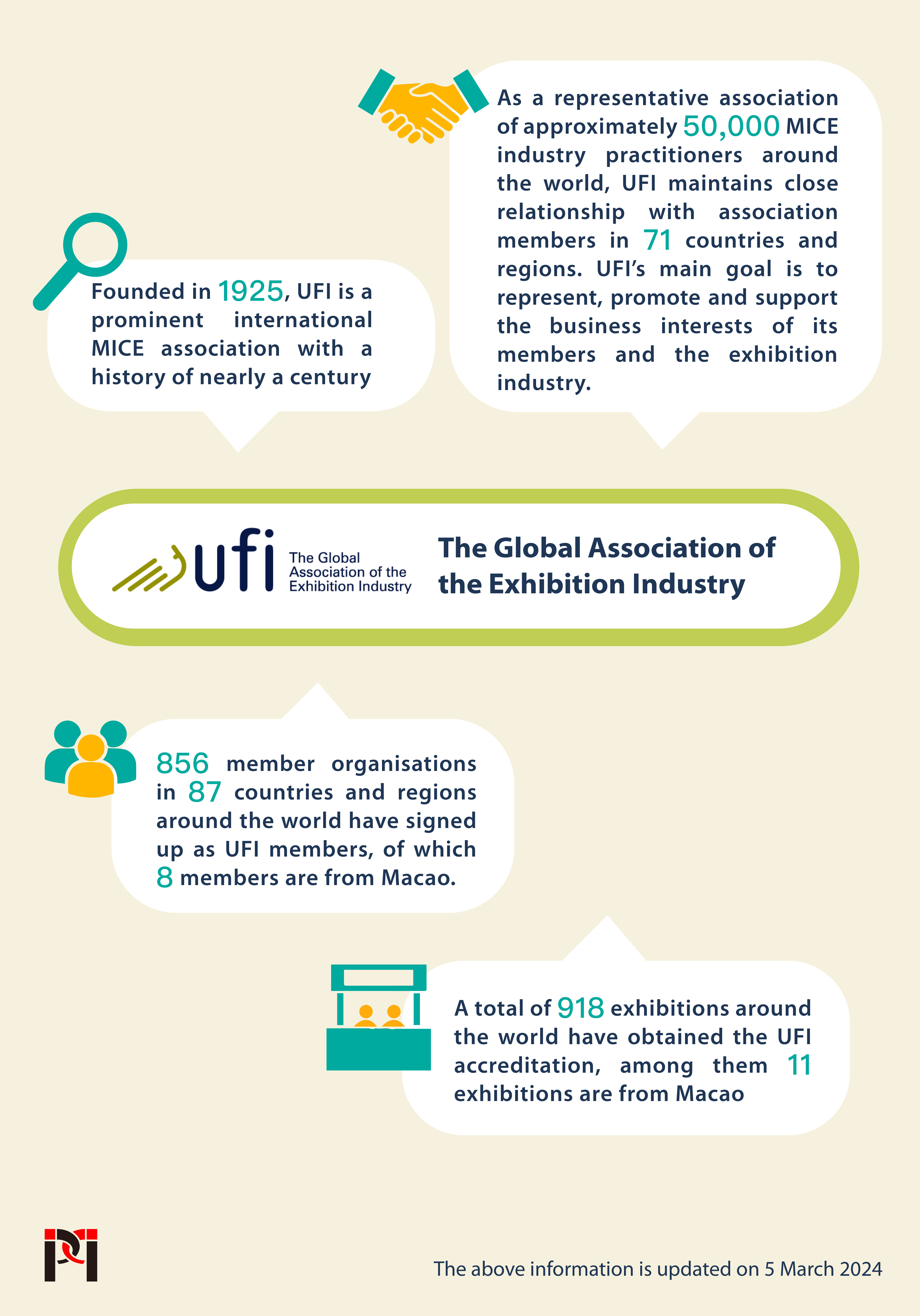 In line with the development strategy of “1+4” industries, another prominent international MICE event - 2024 UFI Asia Pacific Conference - is scheduled to be held in Macao from 7 to 8 March, following the successful conclusion of the first international event - GBA International Sports Business Summit - held in February this year. UFI Managing Director/CEO Kai Hattendorf, and nearly 250 exhibition managers, professional exhibition organisers, and venue managers from 20 countries and regions, including European and ASEAN countries, will gather in Macao to attend the 2024 UFI Asia Pacific Conference.