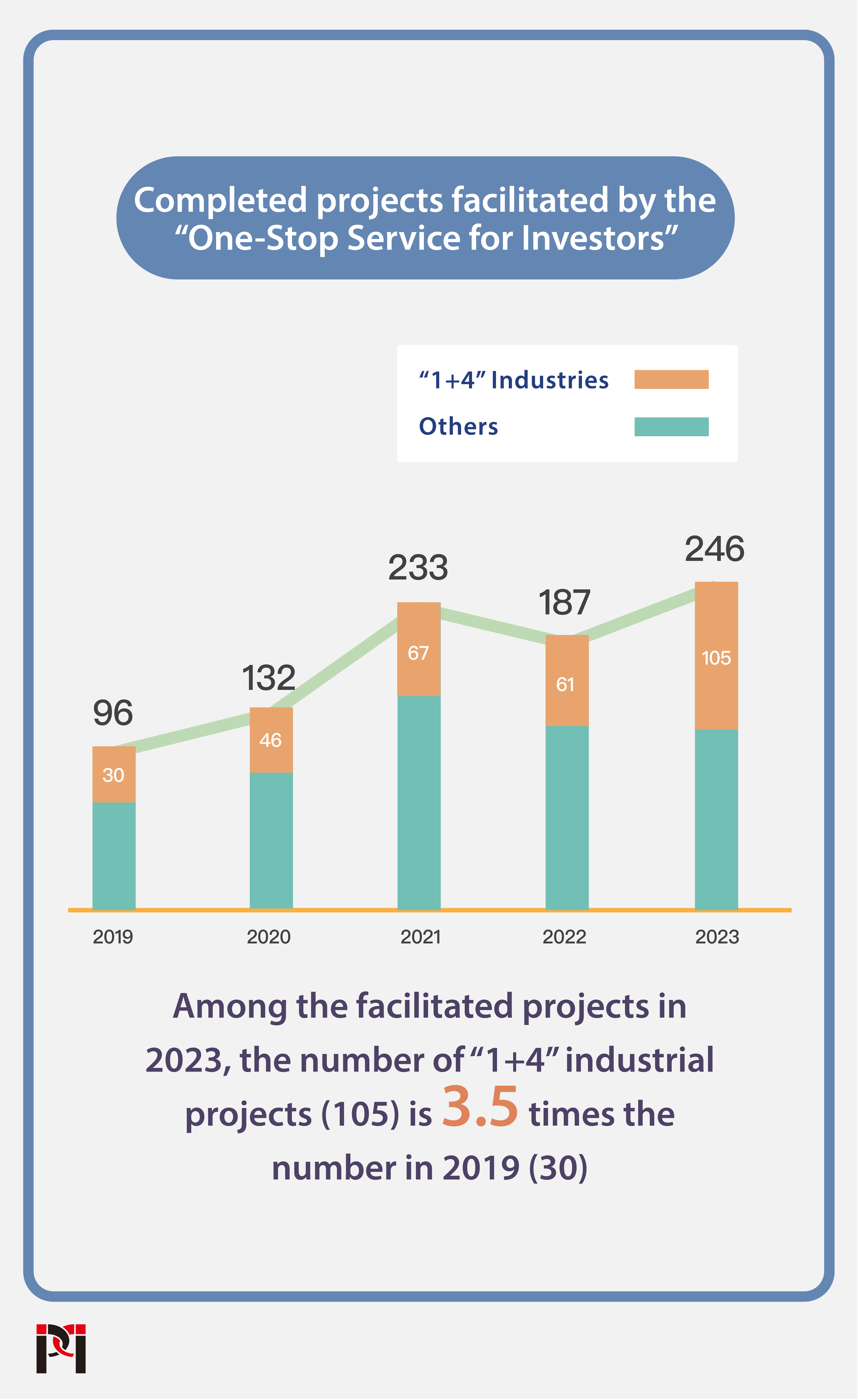 In line with the strategy of “1+4” appropriately diversified development, among the assisted investment proposals of the Investor’s “One-stop Service”, 105 proposals were related to the “1+4” industries, accounting for over 40% of the total (246), which is 3.5 times the number in 2019 (30). Among them, the proposals related to big health, high technology, exhibition and trade, and cultural and sports sectors have recorded significant increases.