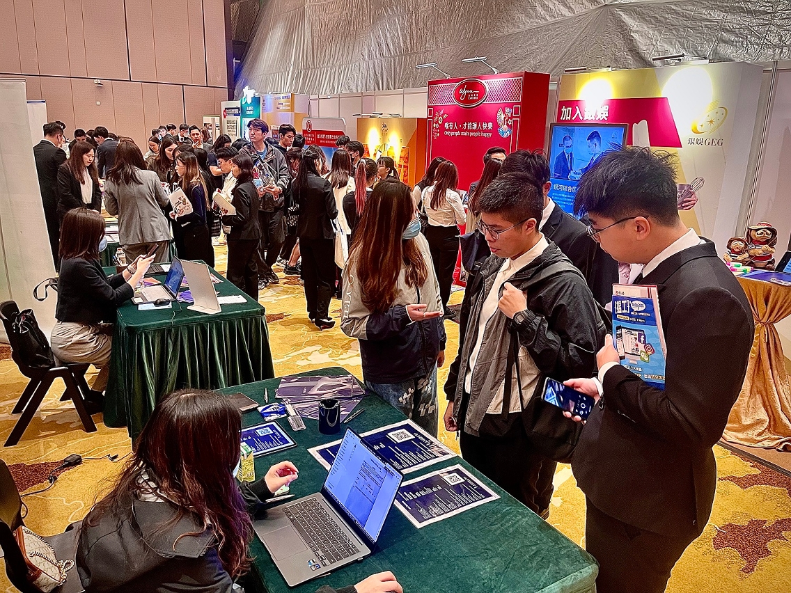 The Career and Internship Fair is an annual event of UM, which aims to help graduating students seek job opportunities and assist students in finding summer internships. This year’s fair offers job vacancies in various fields such as banking and finance, information technology, hospitality and tourism, as well as retail and trade for UM students from different academic backgrounds. In addition, the university has organised a series of career guidance activities, including recruitment talks, ‘Mastering Your Job Interviews’ workshops, ‘Resume Clinic’, and mock interview sessions, to help graduating students improve their job-hunting and interview skills.