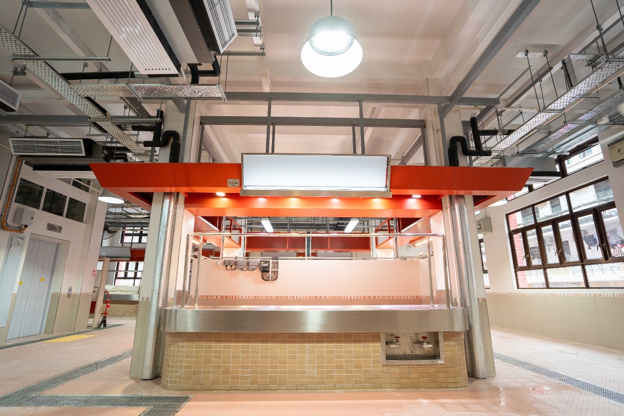 The reorganisation works of the Red Market started in May 2022. Under the premise of balancing conservation and optimisation of the market, the reorganisation works have rebuilt some structural columns and floor slabs to increase the durability and load-bearing capacity of the building. At the same time, all walls and floor tiles have been replaced; the ceilings have been renovated; the drainage network has been rebuilt; the entrances, exits and passages have been optimised; and the spatial layout and hardware and software of the stalls have been improved. Newly added facilities include air-conditioners, barrier-free lifts, goods unloading platforms, optimised lighting systems, more public toilet space, male and female toilets to a reasonable ratio etc., to provide the public with a more comfortable shopping environment in the market.