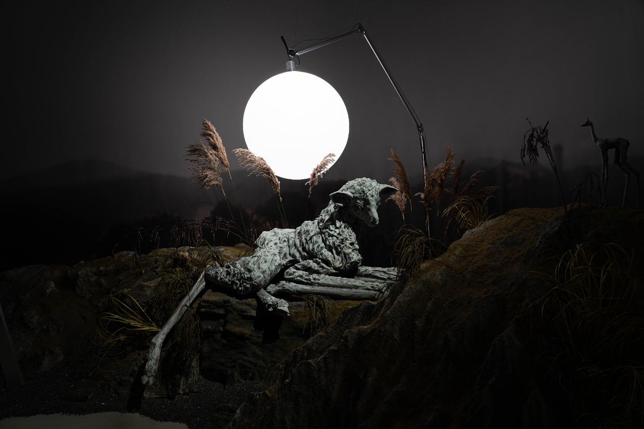 Wong Weng Cheong, born in Macao, studied fine art in the United Kingdom. Inspired by the city of “Zobeide” in the novel Invisible Cities, the artist employed art installations to create a fictional world full of metaphors: a wilderness above the ruins of a city – inhabited solely by a group of herbivores with elongated legs. Meanwhile, the audience, occasionally captured by the camera, seem to be “outsiders” in search of novelty. Through the ingenious juxtaposition of realities and imagination, nature and civilisation, animals and humans, rulers and outsiders, the artist presents the crisis of mutation confronted by humans in the urban development driven by material desires. These elements prompt viewers to contemplate the plight confronted by humanity in the contemporary world and reflects the seemingly vulnerable yet tenacious survival of all beings.
