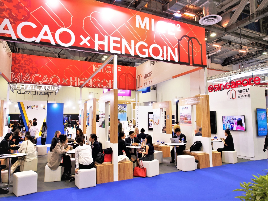 In order to attract more MICE organisers from the Asia-Pacific region to organise conventions and exhibitions in Macao and Hengqin, the Macao Trade and Investment Promotion Institute (IPIM) and the Economic Development Bureau of the Guangdong-Macao In-Depth Co-operation Zone in Hengqin (the “Co-operation Zone”), have jointly organised fourteen (14) Macao-Hengqin companies to participate in the professional exhibition for the MICE industry in Singapore, “The Meetings Show Asia Pacific” from 17 to 18 April, in which a “Macao-Hengqin Pavilion” was set up and a “Macao-Hengqin MICE Promotion and Exchange Seminar” was arranged to introduce overseas event organisers and buyers to the unique advantages of “Macao-Hengqin MICE” in terms of hardware facilities, immigration measures, logistics and support services. During the two-day event, over 500 business matching sessions took place.