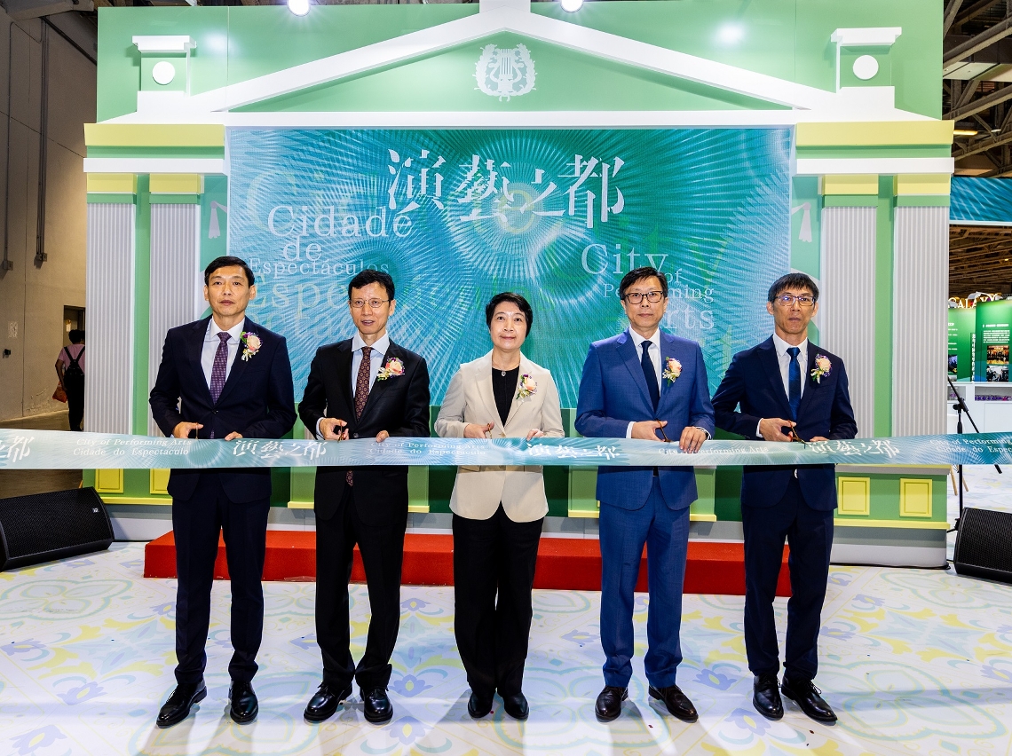 The opening ceremony of the Macao Pavilion “City of Performing Arts” was held today (26 April) and was officiated by the President of the Cultural Affairs Bureau, Leong Wai Man; the Deputy Director of the Department of Publicity and Culture of the Liaison Office of the Central People's Government in the Macao SAR, Yin Rutao; the President of the Administrative Committee of the Cultural Development Fund, Cheong Kin Hong; the Deputy Director of the Macao Government Tourism Office, Hoi Io Meng; and the member of the Cultural Development Consultative Committee, Chan Hou Seng; and was attended by the Adviser of the Office of the Secretary for Social Affairs and Culture, Lo Hou Chi; the Vice President of the Cultural Affairs Bureau, Cheang Kai Meng; the members of the Cultural Development Consultative Committee, Ieng Weng Fat, Lam Chong and Choi Ian Sin; the member of the Cultural Heritage Committee, Maria José do Carmo de Freitas; the Head of Department for Promoting Cultural and Creative Industries of the Cultural Affairs Bureau, Ho Hong Pan; and the Head of the Department of Performing Arts Development of the Cultural Affairs Bureau, Kuok Mio U.
