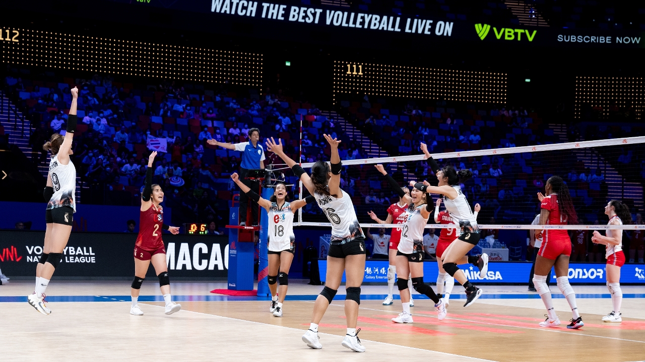 The fourth day of the Women’s Volleyball Nations League 2024 Macao presented by Galaxy Entertainment Group, jointly organized by the Sports Bureau of the Macao SAR Government, Galaxy Entertainment Group, and the Volleyball Association of Macao, China, got underway at the Galaxy Arena today (31 May). Thailand and the Netherlands defeated France and the Dominican Republic 3-2 and 3-1 respectively, while China lost to Japan 1-3.
