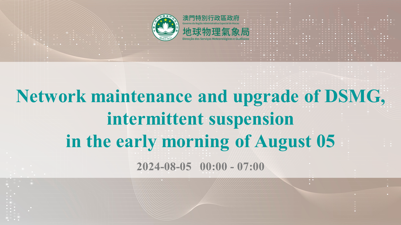 The network system of DSMG will undergo maintenance and upgrade on August 5 (Monday) between 12a.m. and 7a.m. Please kindly be informed that during this period, there will be intermittent delays in certain information dissemination services. The 1311 telephone system inquiry service will also experience intermittent interruptions. Services will return to normal once the maintenance and upgrade work is completed. We apologize for any inconvenience caused.