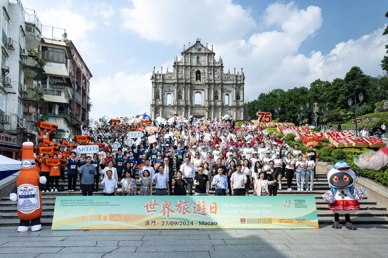 The World Tourism Day is designated on 27 September annually. Carrying on this long-held tradition, Macao Government Tourism Office (MGTO) welcomed the Lucky Tourists, followed by the “Celebration of the 25th Anniversary of the Establishment of the Macao SAR 2024 World Tourism Day Tray Race” held in the afternoon to celebrate the World Tourism Day together with residents and visitors. The Tray Race teemed with lively vibes and showed the city’s vitality as a world centre of tourism and leisure.