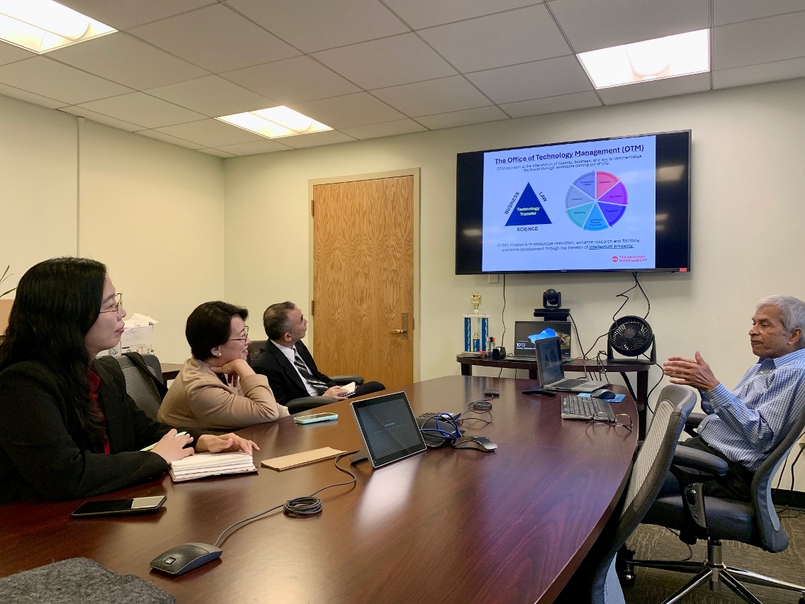 The UM delegation also visited three universities in Illinois and engaged in discussions on industry-academia collaboration as well as innovation and entrepreneurship. During their visit to the University of Illinois Chicago (UIC), the delegation had an in-depth exchange with Suseelan Pookote, senior director of the Office of Technology Management, on promoting university intellectual property management, technology transfer, start-up incubation, and seed fund operations. They also visited the UIC Technology Innovation Lab to learn about its current operations as a start-up incubator.