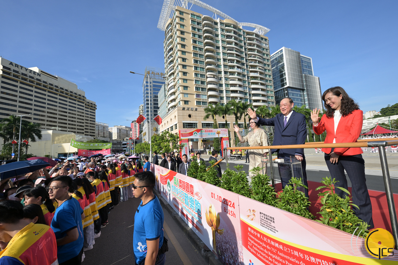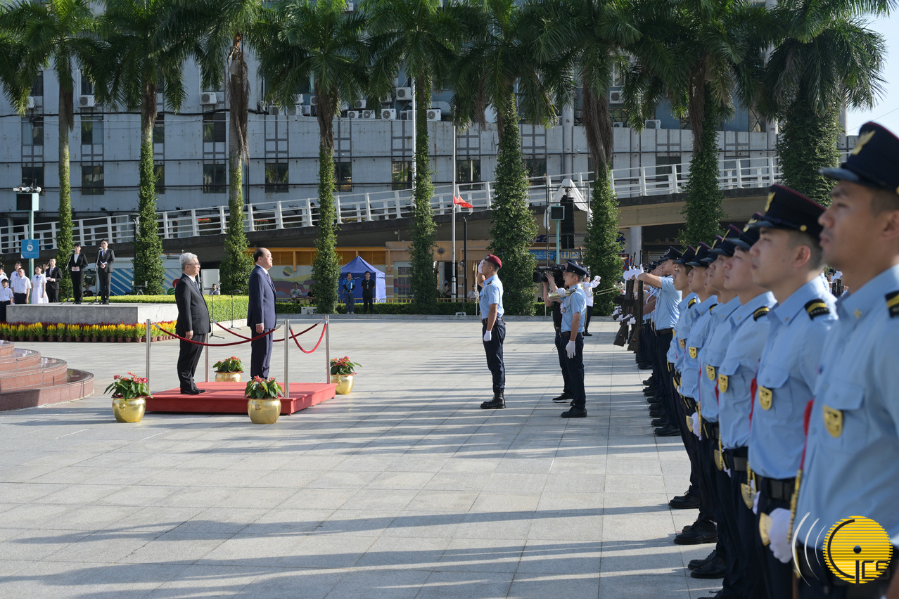 Earlier this morning, at 8am, the Chief Executive and circa 600 guests attended a National Day flag-raising ceremony held at Golden Lotus Square. Guests included: the Chief Executive and his wife; the heads of the Liaison Office of the Central People’s Government in the MSAR; leading officials of the Legislative Assembly and of the judiciary; members of the Executive Council; members of the Legislative Assembly; principal officials of the MSAR Government; and Macao’s delegates respectively to the National People’s Congress and to the Chinese People’s Political Consultative Conference.