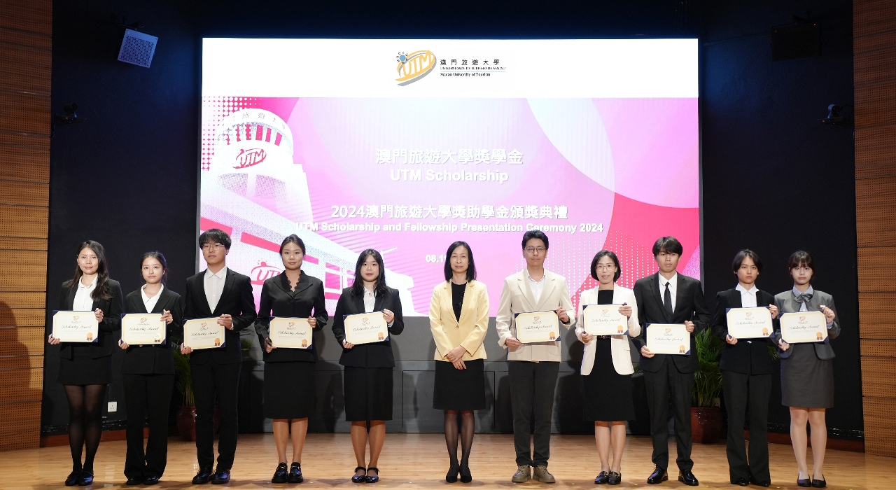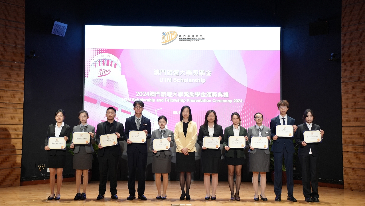 The Macao University of Tourism (UTM) held its 2024 Scholarship and Fellowship Presentation Ceremony on 8 November, presenting more than 300 scholarships to students who demonstrated outstanding performance in academic achievements, global internships, research and exchange activities.