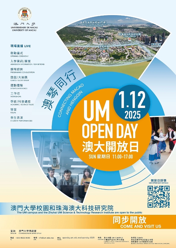 For more information, please visit the UM website, or follow UM’s official WeChat account ‘UMacau1981’ and Facebook page ‘University of Macau’. For enquiries, please contact the UM Communications Office at 8822 8400 or email info@um.edu.mo.