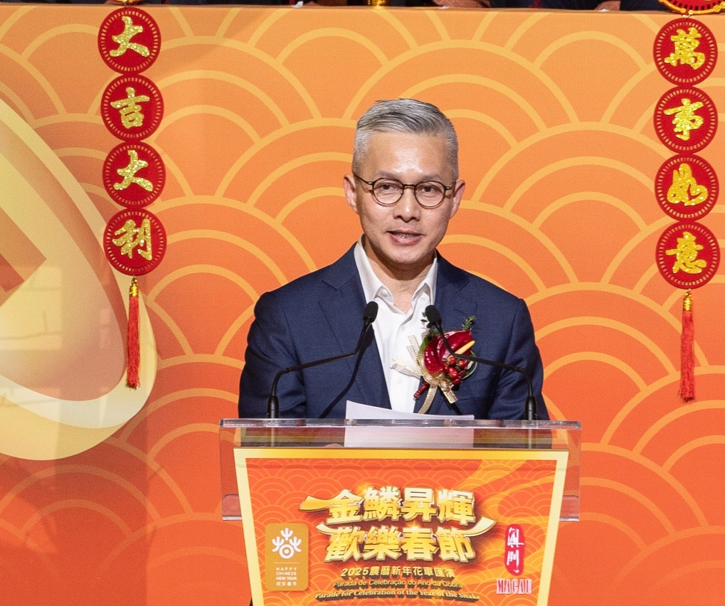 Secretary for Economy and Finance, Anton Tai Kin Ip, remarked that thanks to the concerted effort of different entities and sectors, the Parade for Celebration of Chinese New Year has grown into a prestigious brand of festive event in Macao. This year, the Parade is themed as the golden Snake that dazzles for the joyful Spring Festival. It conveys blessings in the Year of the Snake for Macao to walk into a bright future towards economic prosperity as the pearl on the palm of the Motherland. The “Happy Chinese New Year” celebrations greatly manifests the strengths and appeal of Macao’s “tourism + events”. He hopes that Macao residents and visitors can experience a joyful festival teeming with the harmonious symphony of diverse cultures Macao has nurtured.