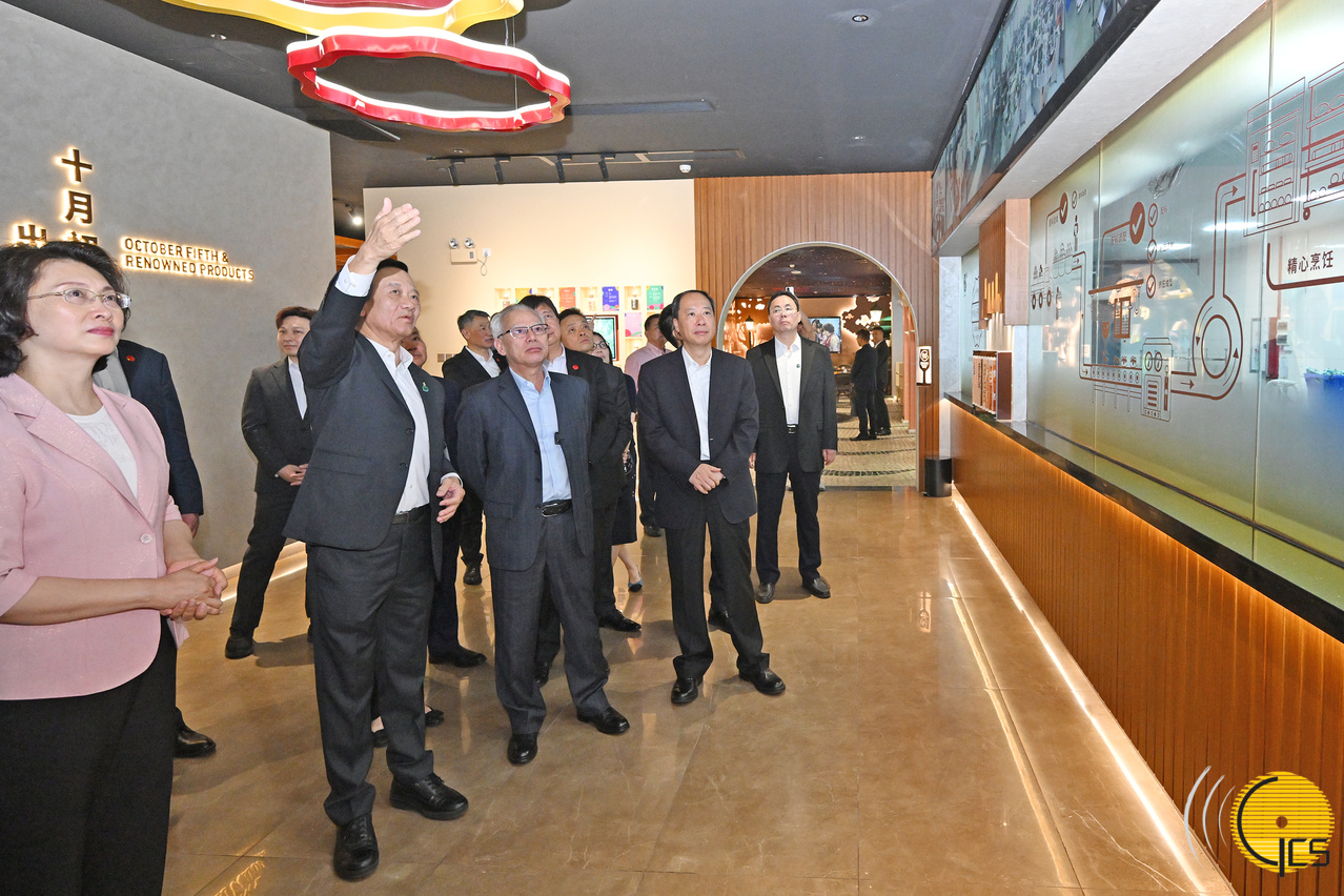 Prior to the meeting, the delegation visited a Macao food manufacturing company with investment in Jiangmen, receiving a briefing on the overall operation of the factory and the company’s development. While in Jiangmen, the delegation then visited the China Qiaodu Museum of Overseas Chinese, to understand the arduous yet splendid entrepreneurial history of Wuyi overseas Chinese, and the rich Wuyi overseas Chinese culture.