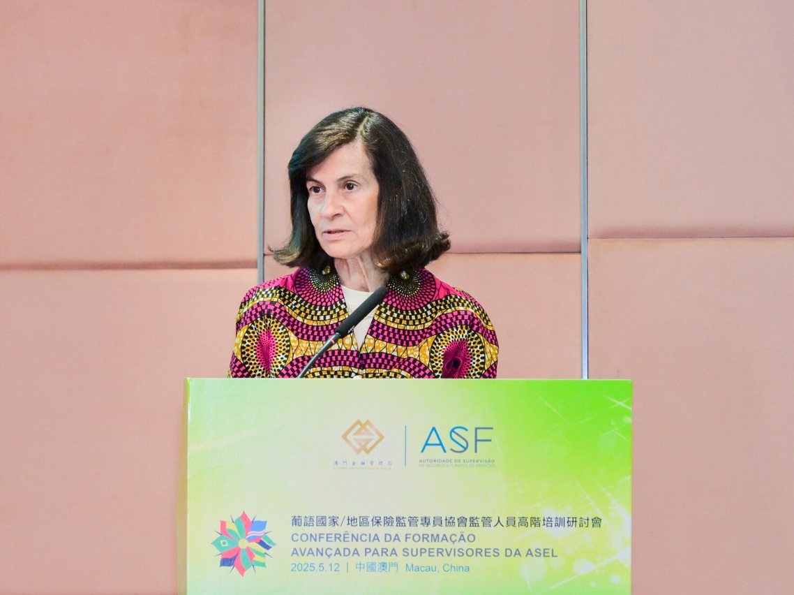 During her speech, Ms. Margarida Corrêa de Aguiar stressed the importance of institutional cooperation and knowledge sharing when facing challenges of the new era. She also highlighted the joint cooperation by AMCM and ASF co-hosting the “High-Level Training and Study Visit” for ASEL regulators in 2025, is the result of partnership between Macao and Portuguese insurance authorities, aims to enhance technical capabilities and promote the exchange of good practices in the insurance supervisory sector. She also pointed out that as digital transformation, cyber risks and artificial intelligence reshape the insurance industry, the regulatory framework needs to be adjusted accordingly to strike a balance between technological innovation, financial stability and consumer protection.