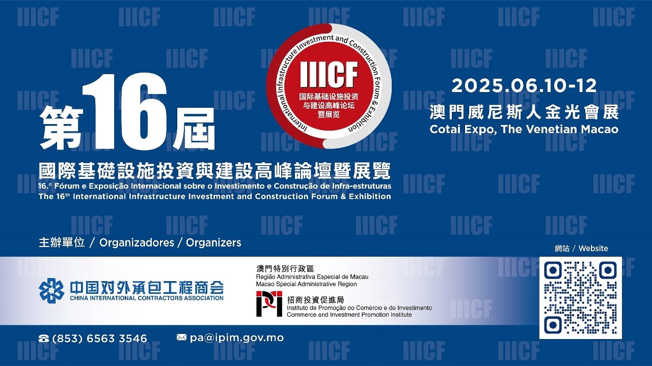 The 16th International Infrastructure Investment and Construction Forum & Exhibition (IIICF), jointly organised by the Commerce and Investment Promotion Institute (IPIM) of the Macao Special Administrative Region and the China International Contractors Association (CHINCA), will take place from 10 to 12 June (Tuesday to Thursday) at Cotai Expo, The Venetian Macao under the theme “Enhanced Connectivity for Win-Win Co-operation”. This year’s event highlights the expanded exhibition scale and the commitment to fostering deeper synergies between the forum and the exhibition, thereby enhancing the overall effectiveness of the event.