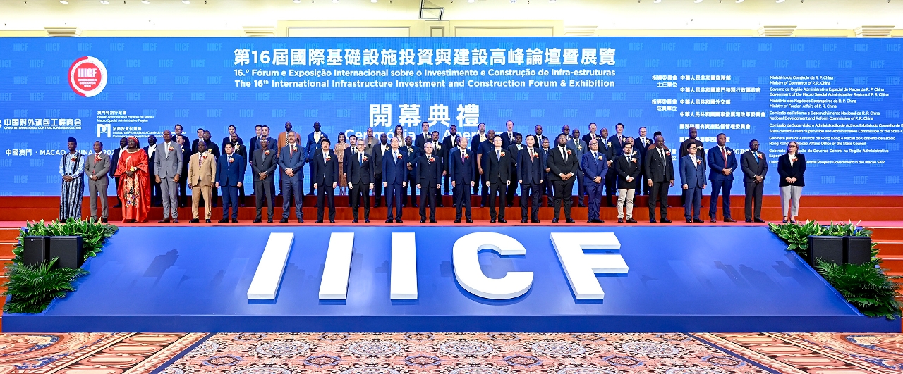 • The Chief Executive, Mr Sam Hou Fai, poses for a photograph with guests at the opening ceremony of the 16th International Infrastructure Investment and Construction Forum & Exhibition (IIICF)