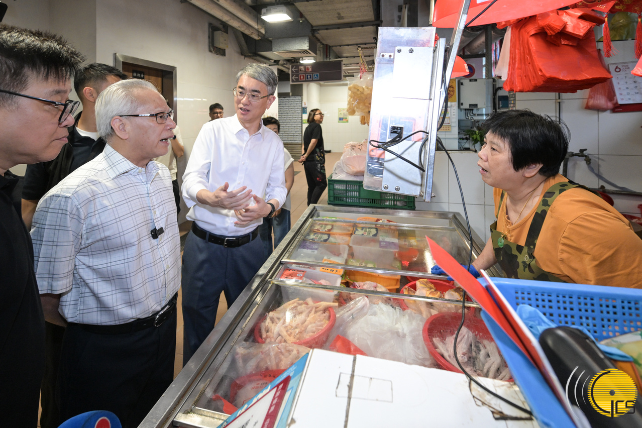 During his visit to Patane Municipal Market Complex, accompanied by the Secretary for Administration and Justice, Mr Cheong Weng Chon, Mr Sam engaged with local vendors to discuss trading conditions and other operational matters. He visited the market’s food court, interacting with members of the public, and encouraging food vendors to innovate and develop unique offerings to attract more customers.