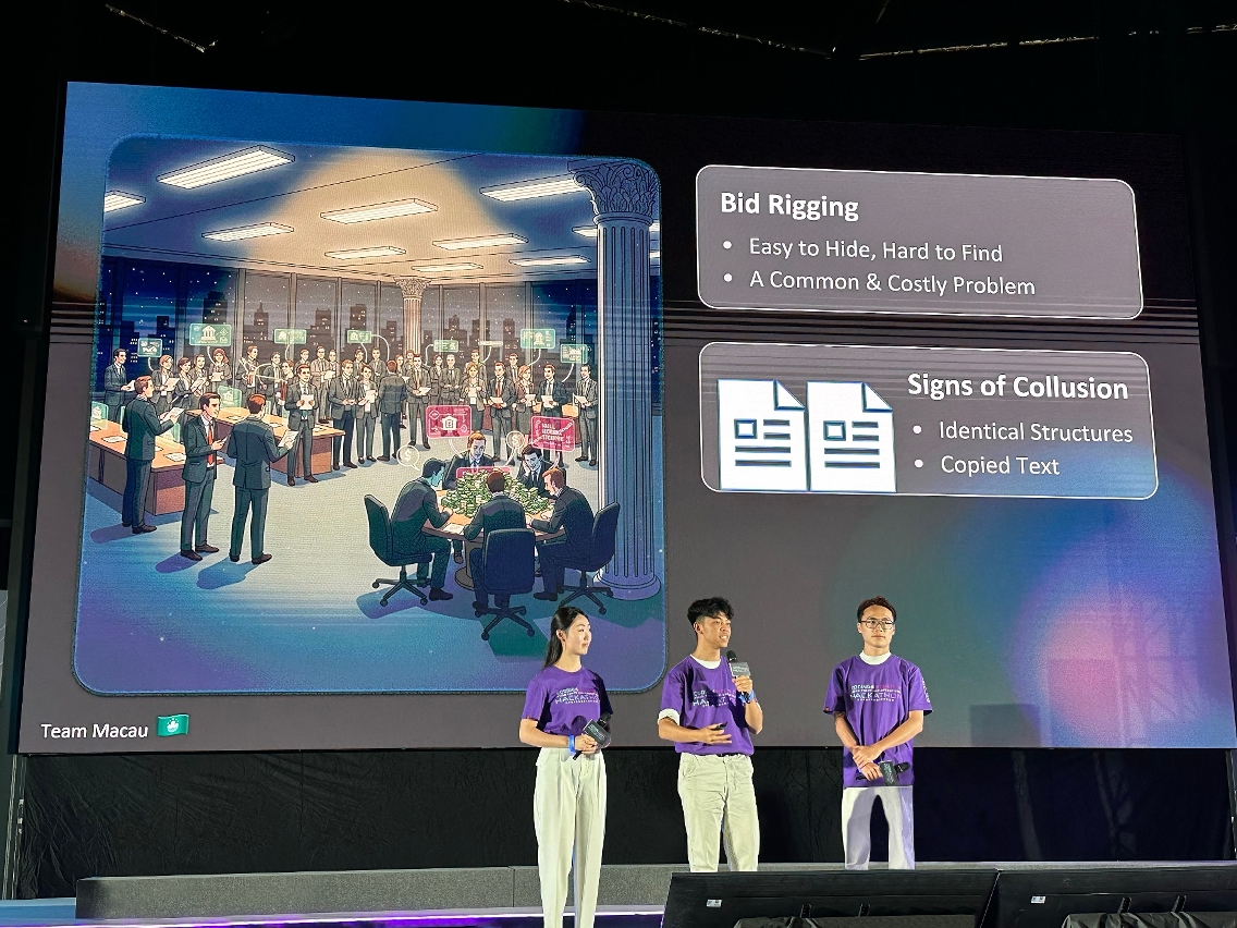 During the Grande Finale of the International Contest on 19th September, 14 teams of Asian youth elites including the Macao team presented and demonstrated their solution prototypes to the judge panel made up of experts in the related fields from the organisations such as UNODC. They introduced how to combat corruption by means of technology. Then the judges rated the solutions based on the criteria including relevance and impact, presentation quality, technical implementation, innovation and creativity. Finally, the Macao team “Just do”, made up of Sam Ka Lok, Loi Nga Hei and Cai Pei Jun, won the gold award with the prototype of an AI-powered public procurement analysis platform named “BidTrust”. The team also won the “Audience’s Favourite”. The winning solution designed by the Macao team aims to help public departments in enhancing the efficiency of assessing tender documents in procurement processes and detecting possible irregularities in order to prevent corruption. The winning teams’ innovative thoughts were highly commended and the gold award winning team will be arranged to present its corruption prevention solution at the Conference of the States Parties to the United Nations Convention against Corruption which will take place in Doha, Qatar at the end of this year. In addition, both of the Macao teams participating in the International Contest and the Regional Contest won the “Friend of Hong Kong” award.