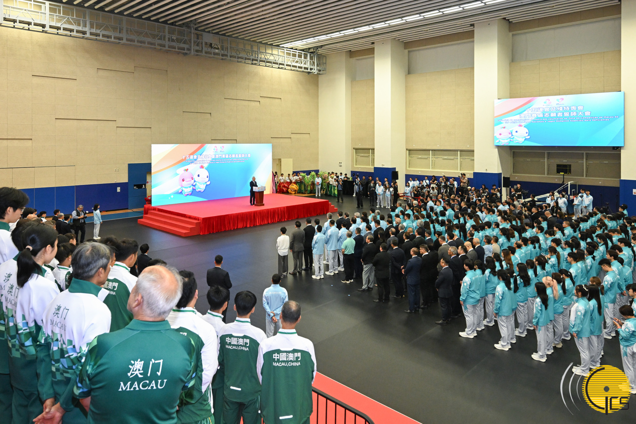 Mr Sam made the remarks at a flag presentation ceremony for the Macao delegation to the 15th National Games, the 12th National Games for Persons with Disabilities, and the 9th National Special Olympic Games. The ceremony, held at Mong-Ha Sports Centre, saw Mr Sam present the flag of the Macao Special Administrative Region (MSAR) to the Macao delegation, and oversee a swearing-in of volunteers