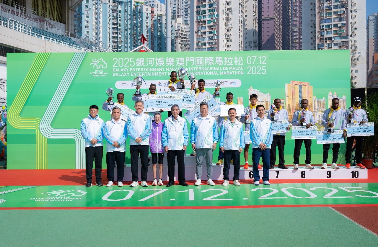 The 2025 Galaxy Entertainment Macao International Marathon, jointly organized by the Sports Bureau, Galaxy Entertainment Group (GEG), and the General Association of Athletics of Macau (AGAM), was held today (7 December) at the Olympic Sports Centre Stadium. Victor Kipchirchir from Kenya won the men’s marathon with a new race record, while Mastewal Birhanu Senay from Ethiopia won the women’s marathon.
