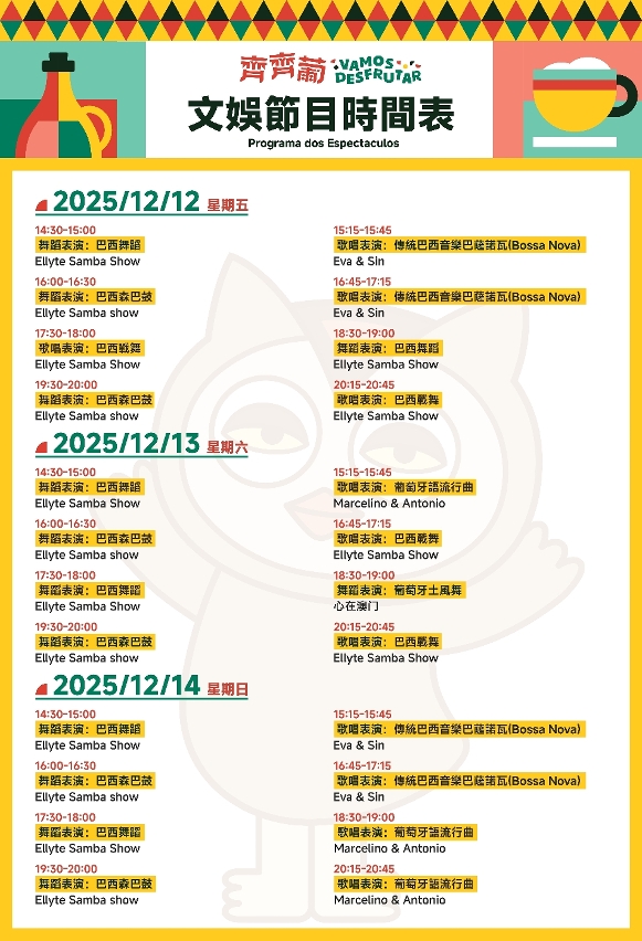 • The "2025 Let’s Hang Out – Lusophone and Macao Products Bazaar " (Guangzhou) will be held from 12 to 14 December (Friday to Sunday) at the North Square of the Guangzhou Grandview Mall