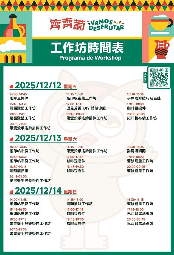 • The " Let’s Hang Out – Lusophone and Macao Products Bazaar" (Guangzhou) will feature multiple workshops over three days