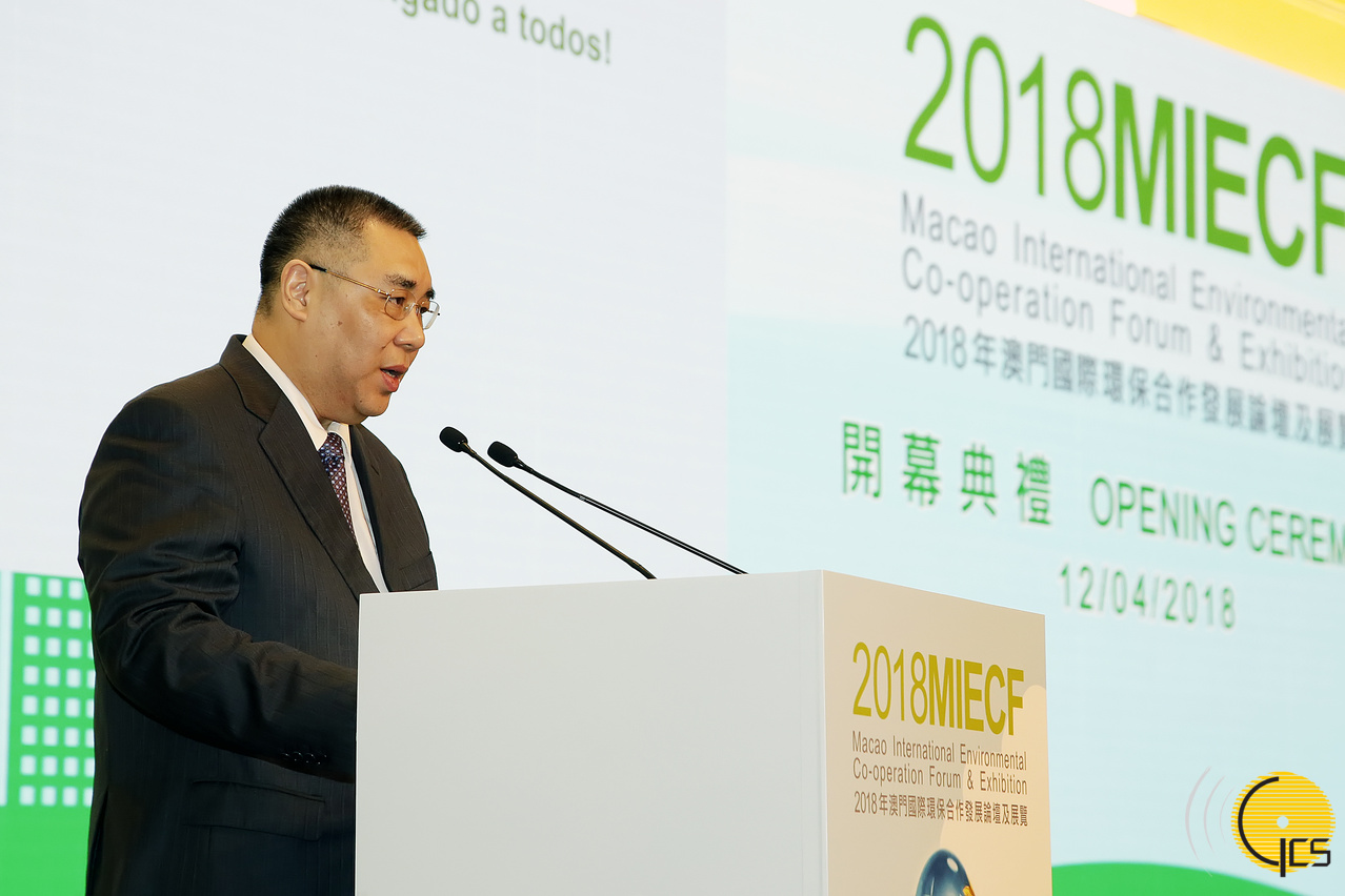• Chefe do Executivo, Chui Sai On discursa na cerimónia de inauguração do Fórum e Exposição Internacional de Cooperação Ambiental 2018.